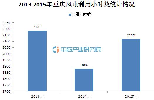 从利用小时数来看,2013-2015年重庆风电产业利用小时数先减少后增加,由2013年的2185小时下滑至2014年的1880小时再增长到2015年的2119小时。