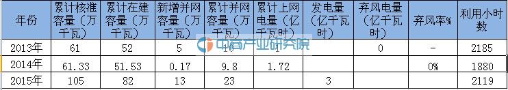 据中商产业研究院大数据库显示,2015年,全国风电产业继续保持强劲增长势头,全年风电新增装机容量3297万千瓦,新增装机容量再创历史新高,累计并网装机容量达到1.29亿千瓦,占全部发电装机容量的8.6%。2015年,风电发电量1863亿千瓦时,占全部发电量的3.3%。2015年,新增风电核准容量4300万千瓦,同比增加700万千瓦,累计核准容量2.16亿千瓦,累计核准在建容量8707万千瓦。