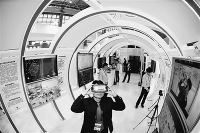 中国大数据产业峰会暨中国电子商务创新发展峰会5月25日至29日在贵阳举行。图为参观者在博览会上体验VR技术。新华社记者 欧东衢摄